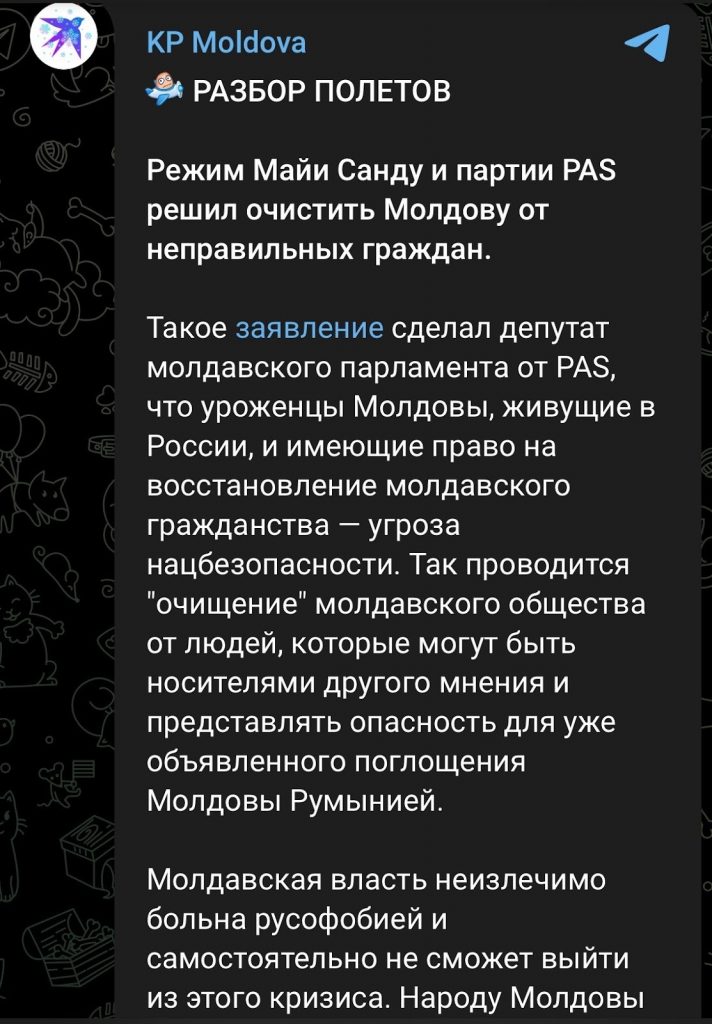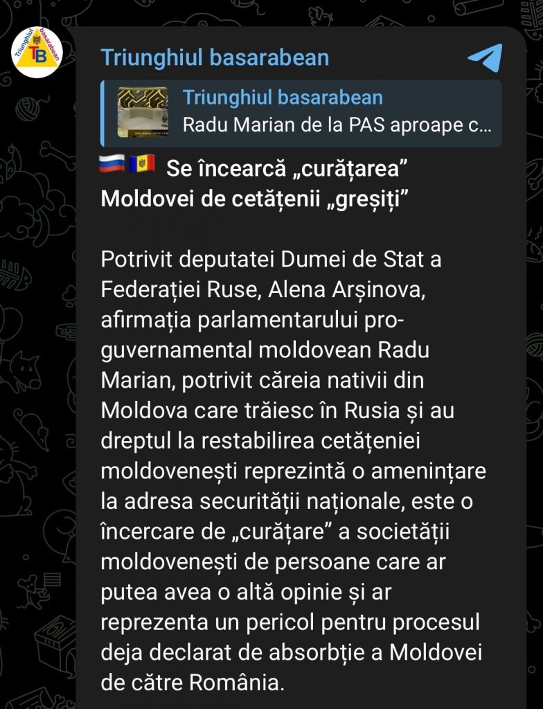 Mesajele au fost redistribuite în formă aproape identică de mai multe canale, ceea ce a redus diversitatea surselor și a creat impresia unui consens. Declarațiile deputatului PAS au fost reinterpretate, inclusiv prin afirmația potrivit căreia autoritățile ar „epura” cetățeni, fără prezentarea contextului complet sau a pozițiilor alternative. Accentul pus pe „moldovenii din Rusia” și pe pierderea cetățeniei riscă să exploateze emoțiile în rândul diasporei, în timp ce etichetarea guvernării drept „rusofobă” sau orientată spre „absorbția de către România” contribuie la polarizarea discursului public și la diminuarea încrederii în instituțiile statului.