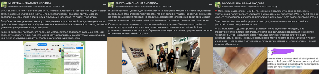Более того, многочисленные посты, апеллирующие к эмоциям и распространённые в различных группах, в этот период «провели учет» неудач четырёх лет правления ПДС, что вполне закономерно, но лишь до тех пор, пока их не стали объяснять конспирологическими аллегориями с участием теневых агентов и «марионеток и новаторов Сороса». Утверждалось, что правительство Молдовы – это партия, поддерживаемая Соросом, часть разваливающейся глобалистской системы, а не подлинно европейское образование. Примеры постов в этом ключе на румынском и русском языках публиковались и распространялись в течение нескольких дней десятки раз во многих группах с десятками тысяч участников.