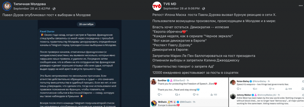 Сообщение основателя Telegram Павла Дурова, в котором он утверждает, что французские спецслужбы попросили его подвергнуть цензуре определенные каналы в Республике Молдова, было быстро использовано в качестве инструмента для разжигания слухов о внешнем вмешательстве и цензуре, особенно посредством комментариев.