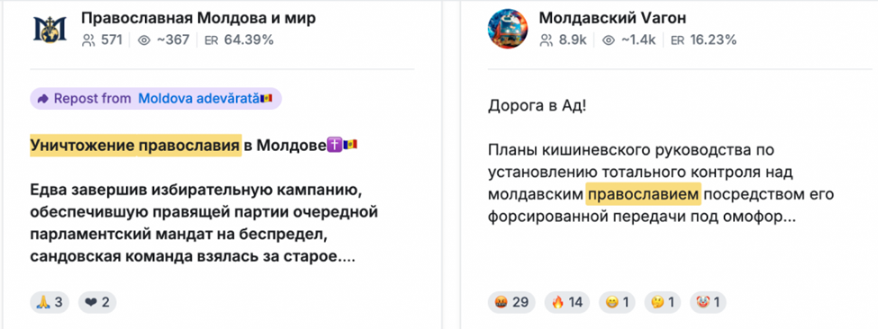Кроме того, 19 октября на сайте «Комсомольская правда в Молдове» была опубликована статья под заголовком: «В руки священников попал секретный план ПАС по уничтожению православия в Молдове: Почему церковь объявили врагом государства». В качестве источника информации в статье содержится отсылка к одному из постов на анонимном Telegram-канале Moldova adevărată, что само по себе вызывает серьезные вопросы по поводу достоверности и проверки информации. Согласно Деонтологическому кодексу журналиста Республики Молдова, пресса обязана проверять факты, пользуясь как минимум двумя независимыми источниками, и избегать использования анонимных источников, за исключением случаев, представляющих значительный общественный интерес. В данной же ситуации никаких конкретных доказательств, подтверждающих подлинность обсуждаемого в материале документа, нет.